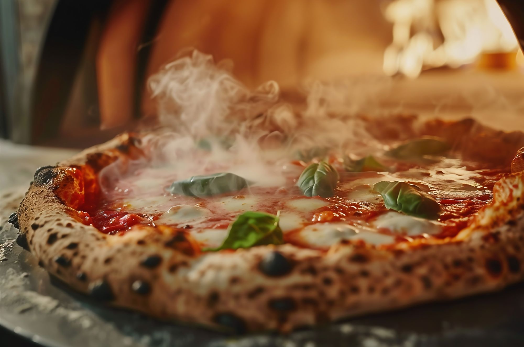 Rzemieślnicza pizza inspirowana Neapolem. Nasze ciasto fermentuje 48 godzin, co nadaje mu wyjątkową lekkość i głęboki smak. Każda pizza neapolitańska wypiekana jest w temperaturze 480 st C przez około 90 sekund, dzięki czemu uzyskuje charakterystyczny, puszysty rant i miękkie wnętrze.